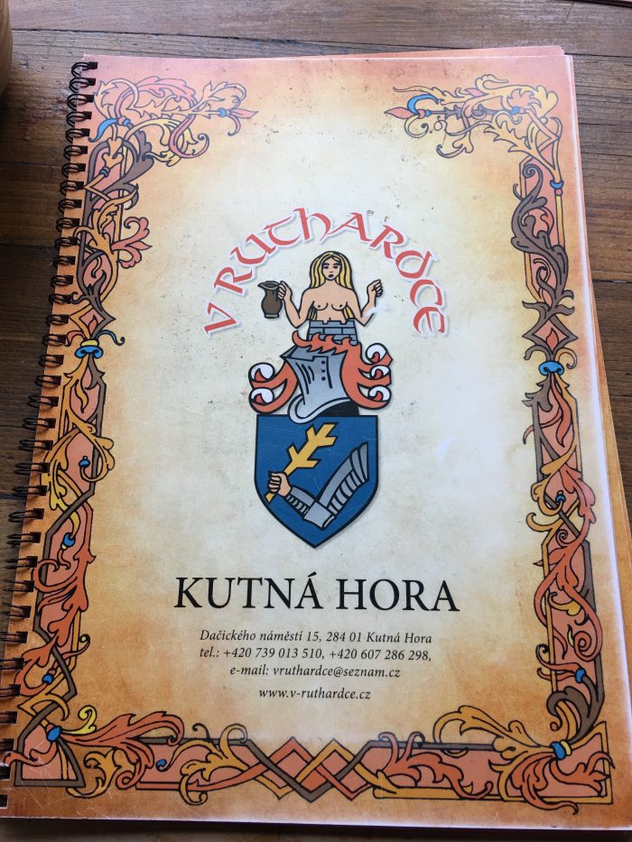 當機立斷前往 TripAdvisor 上第二名的 Restaurace V Ruthardce,幸好人不多,還有得吃,不然真的不知道該怎麼辦。而且以為原本想坐的位置都被預定(好幾張桌子上都寫著 reserved),問了以後才知道保留的是晚上六點多的,所以我們就安心坐下開始點餐。